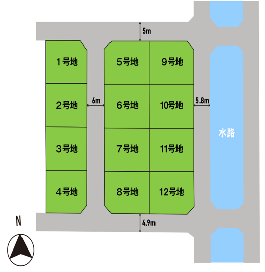 | 備考 | ・建築条件付き土地 ・令和8年5月完成予定 ・完成前のため、土地面積・土地価格が変更となる可能性がございます。 ・南側前面道路、東側前面道路には窒素菅があるため、道路掘削を行う際には太陽日酸との事前協議・立合が必要となります。 ・9号地~12号地は公共用地使用使用料が発生いたします。金額は未定です。 ・本物件は、土地売買契約締結後3か月以内に、株式会社ライフステージと建物の建築請負契約を締結することを条件に販売します。この期間内に建築請負契約が締結されなかった場合は、土地売買契約は白紙となり、受領した手付金等の金銭は全てお返しします。 |