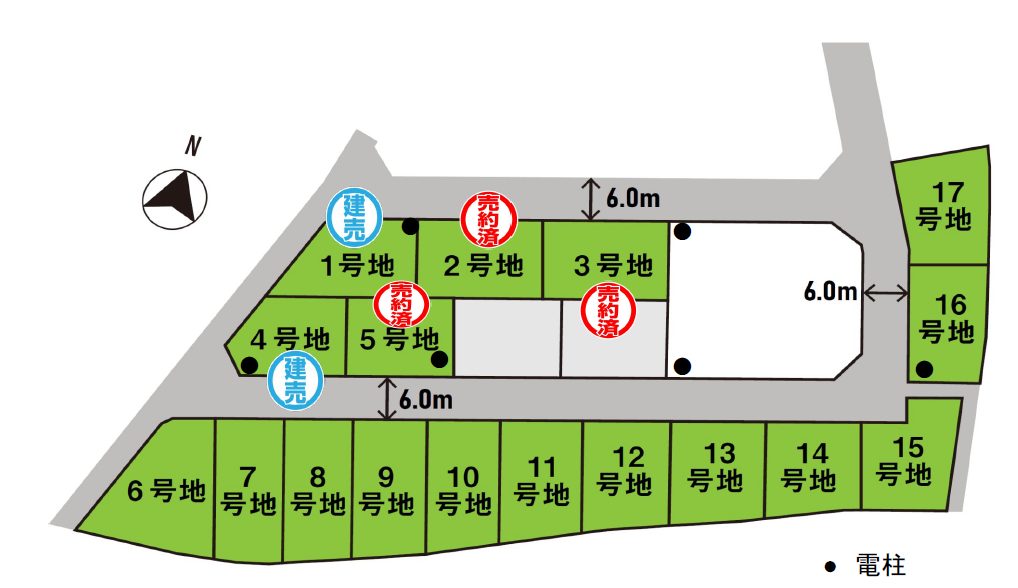 | 備考 | ・建築条件付き土地 ・6号地~17号地は令和8年4月頃完成予定 ・6号地~17号地は完成前のため、土地面積・販売価格が変更となる可能性がございます。 ・本物件は、土地売買契約締結後3か月以内に、株式会社ライフステージと建物の建築請負契約を締結することを条件に販売します。この期間内に建築請負契約が締結されなかった場合は、土地売買契約は白紙となり、受領した手付金等の金銭は全てお返しします |