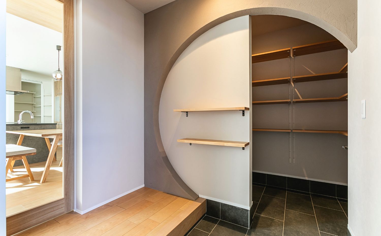 収納をたっぷり確保し、生活感を見せないスッキリとした空間を叶えています。