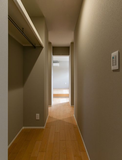 家事動線の徹底的な効率化と、家族それぞれの休息を優先した「東西ゾーニング」が、忙しい共働き世帯にゆとりを生む平屋です。樺桜の質感と抑えた照明が、日々を上質な安らぎで包み込みます。