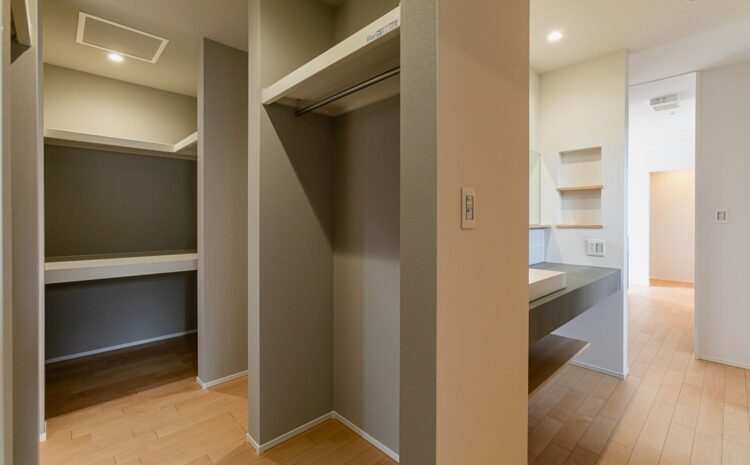 家の中心にファミリークローゼットを配置し、「洗う・しまう・着替える」を数歩で完結させる「家事ラク動線」が、忙しい共働き世帯の家事時間を劇的に短縮します。