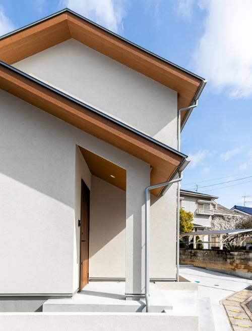 木の温もりと白壁のコントラストが美しく、帰宅時にほっとする落ち着いた雰囲気に仕上がっています。
