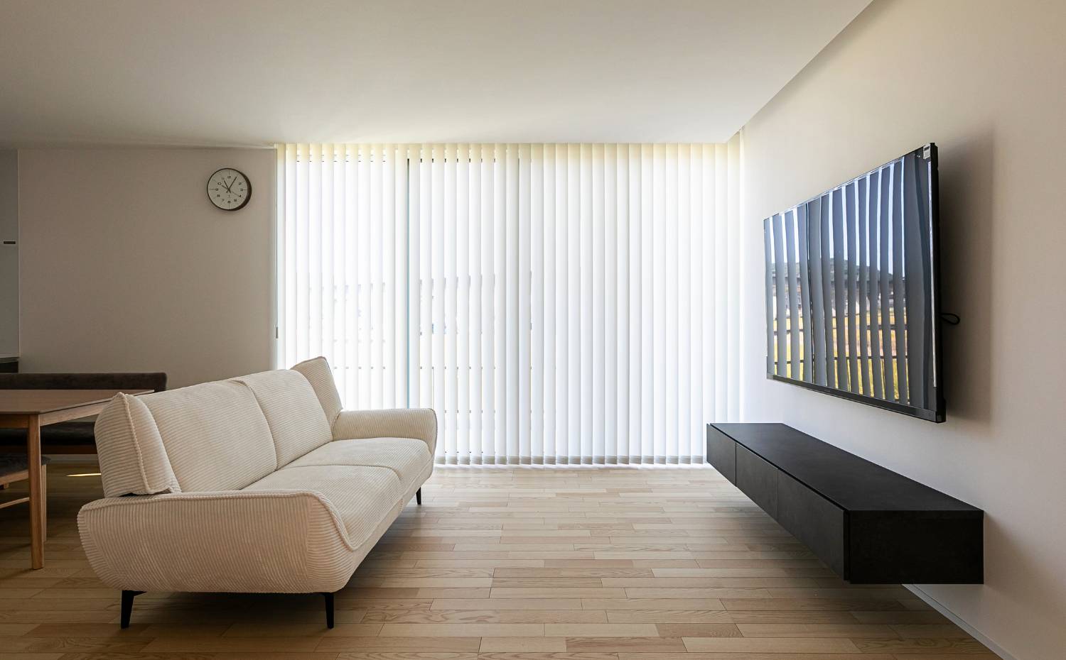 大きな開口からたっぷりと光が入り、時間とともに変わる光の表情を楽しめるリビング。